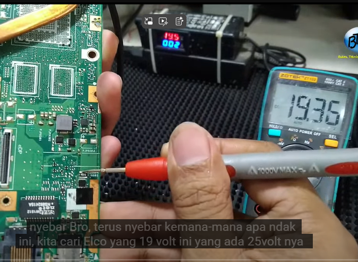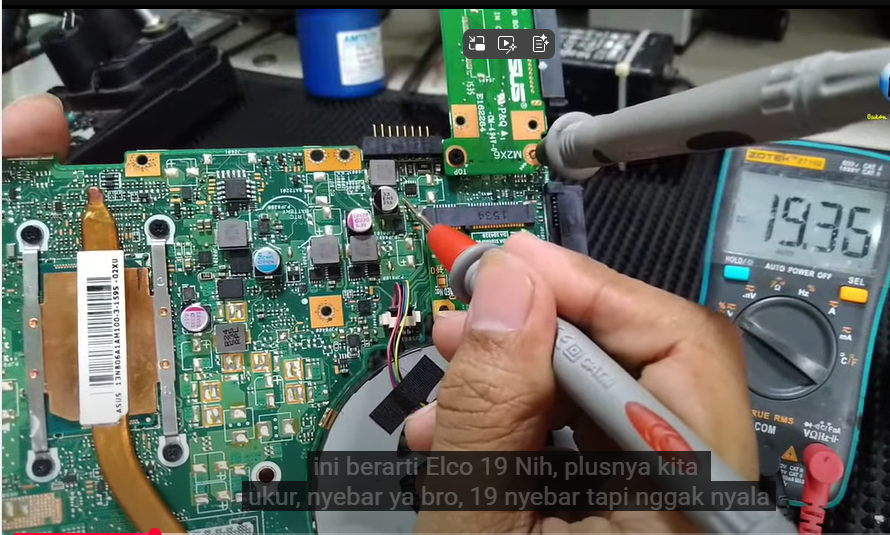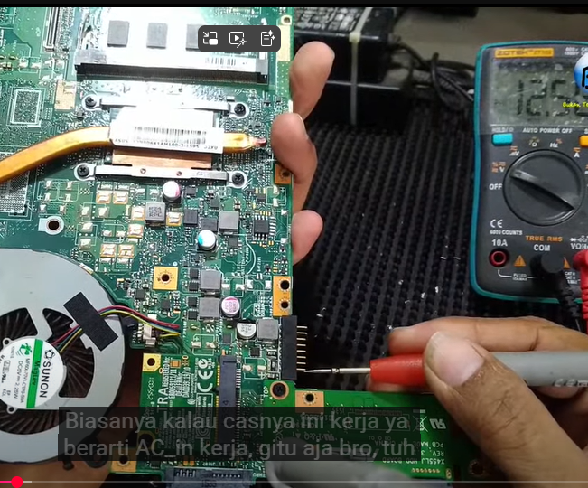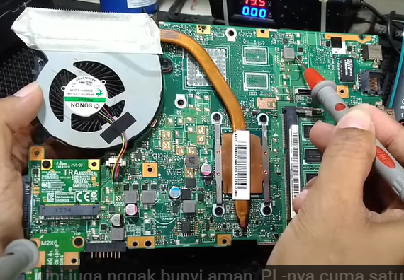- VIN Cara cek VIN, tancapkan adaptor laptop kondisi terhubung, ukur dengan AVO Meter Ukur R seharusnya terukur 19V