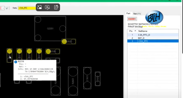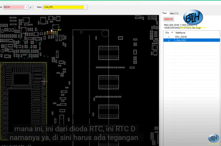 Ukur RTC RESET, pastikan sesuai pada boardview angkanya.